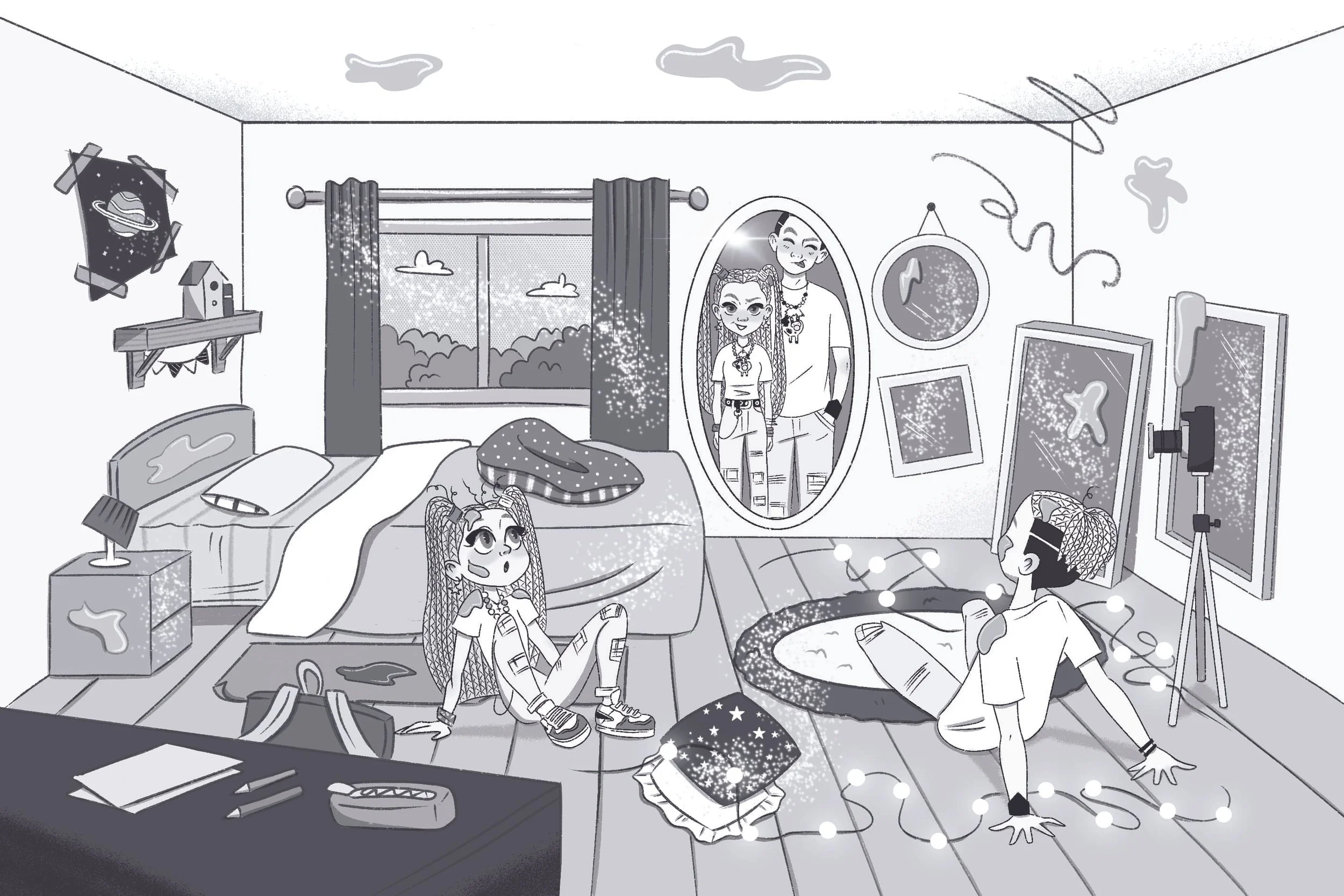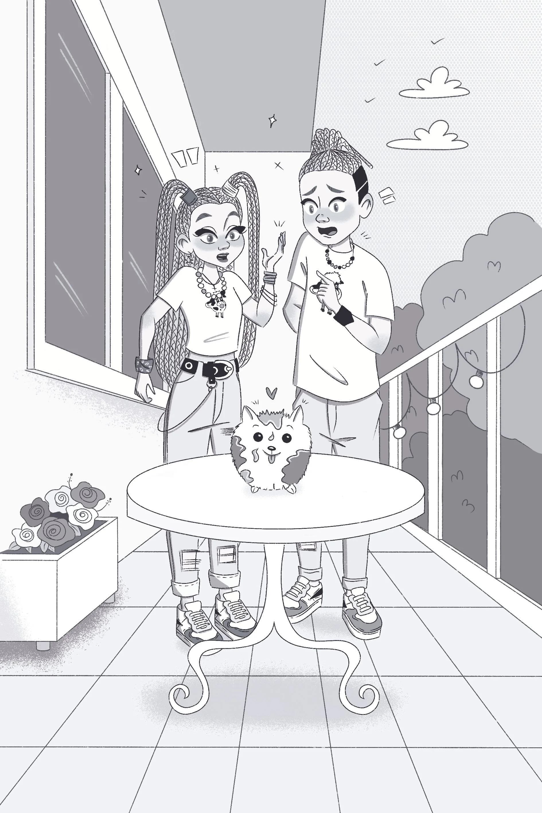 Mika y Sofi Boms son dos divertidos hermanos y este libro narra sus aventuras más locas. Escrito en tono de humor, estas son algunas de las ilustraciones del interior para el título Reto de hermanos.